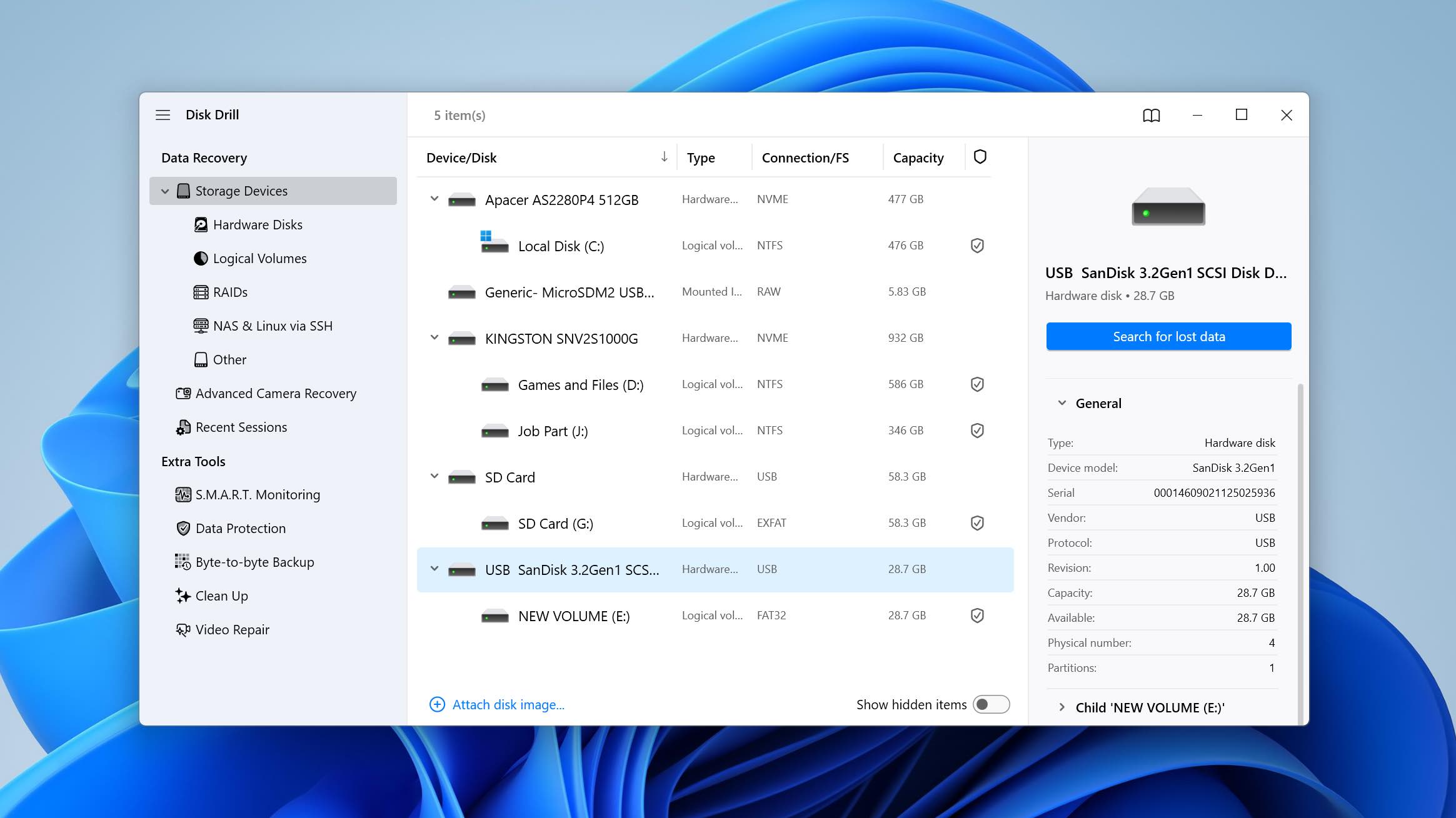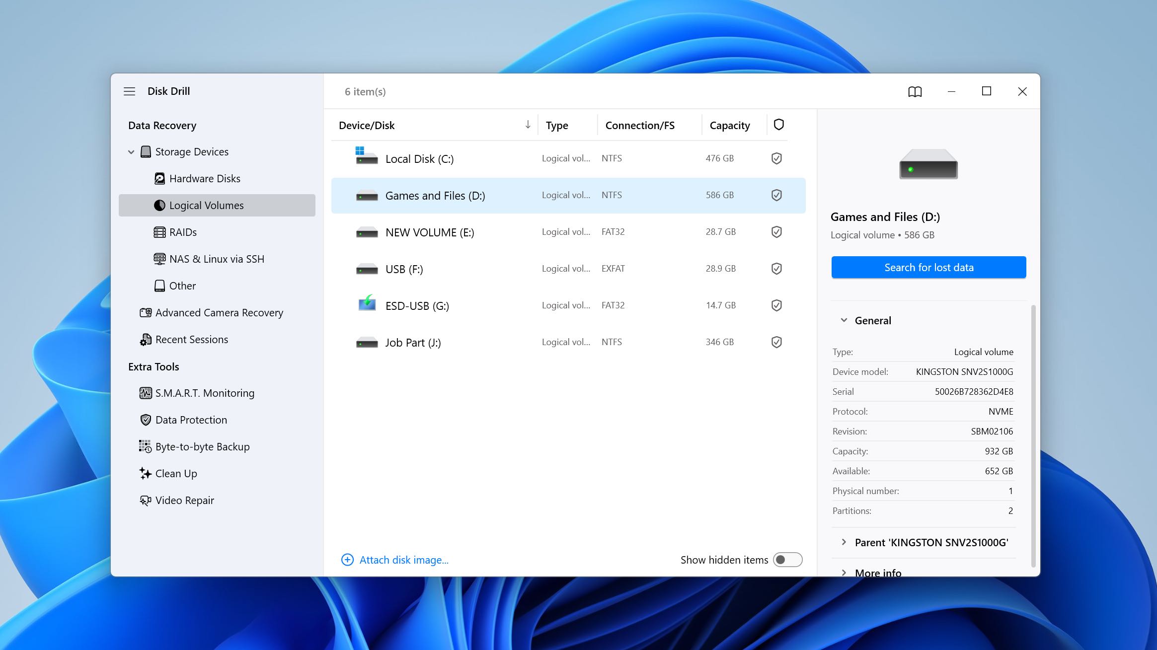 The application doesn’t stop there; it can recover directly from Windows Storage Spaces as well as supported NAS devices and RAID configurations, pushing its capabilities further. As if that wasn’t enough, Disk Drill is a joy to use, coming loaded with extra data protection features to put your mind at ease. To get started and see its capabilities for yourself, you can take advantage of Disk Drill’s free trial, which lets you recover up to 100 MB of data for free before you commit to the lifetime license.