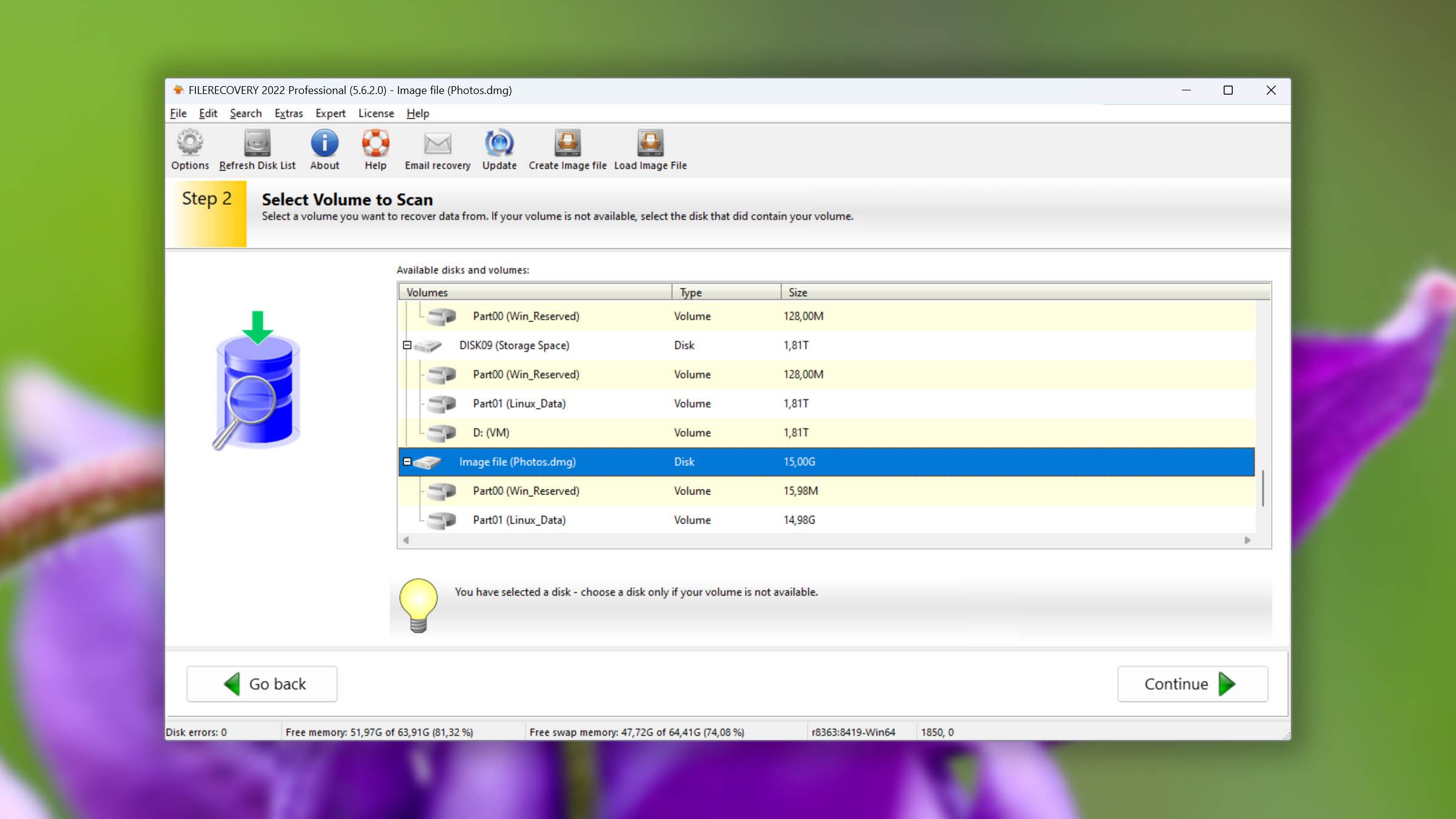 At the source selection screen (Step 2), you have the option of creating or loading an image file if you don't want to scan the disk directly; useful if your storage device is unstable.